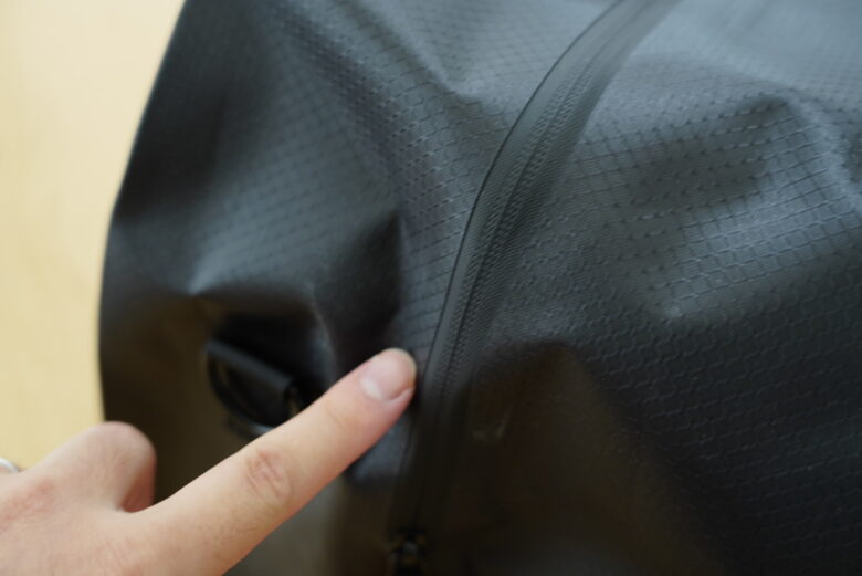 意外と重要なのが、ファスナーの滑らかさ。このバッグは止水ファスナー仕様なんですが、よくある「防水ジッパー特有の引っかかり」がほとんどありません。